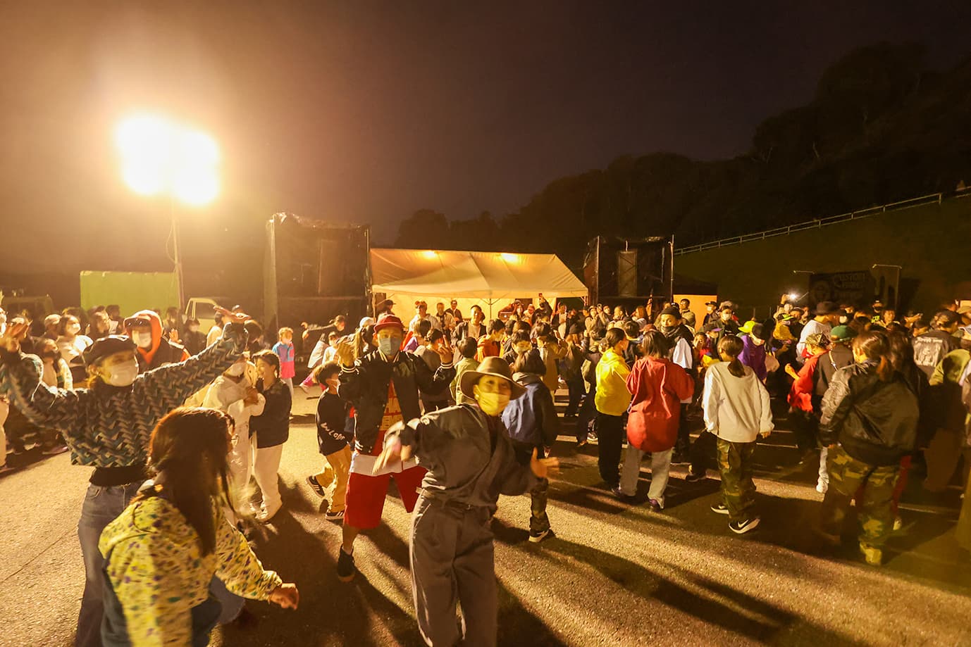 野外DJブース前にて、DJのかける音楽(15分)で自由に踊ってもサイファーしてもOK!!
